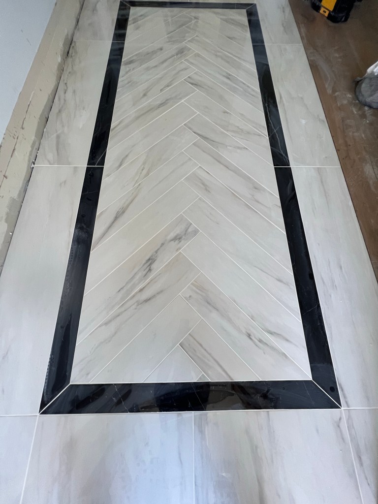 For installations pertaining to large panel tile (5’x10’ tile), wet rooms or curbless bathrooms to increase your ease of access, tub surrounds or free standing tub structures, enclosures with pony walls, wall to wall custom niche work, heated flooring, full bathroom tiling, main floor tiling, custom made herringbone with border inlays, mitred fireplace surrounds, kitchen backsplashes, mosaic and glass work or anything you can dream of, I have done it all. Don’t hesitate to inquire me on any advanced projects as I welcome challenges wholeheartedly.