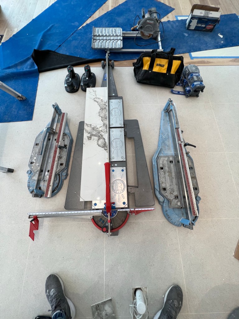As there can be a limit to skills used to perform some aspects of the job, new tools are always being invested for my business to keep my jobs at a professional level. Whether it’s a new tile cutter meant for 48” tiles or new grinder blades to keep the tiles I cut chip free.